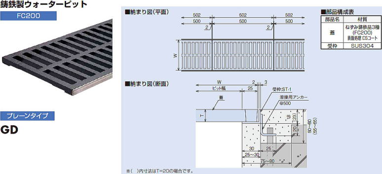 - 素足で歩く可能性のある場所(浴室・プール・公園etc)では、アルミグレーチンク・縞鋼板製排水蓋・鋳鉄製グレーチンク、